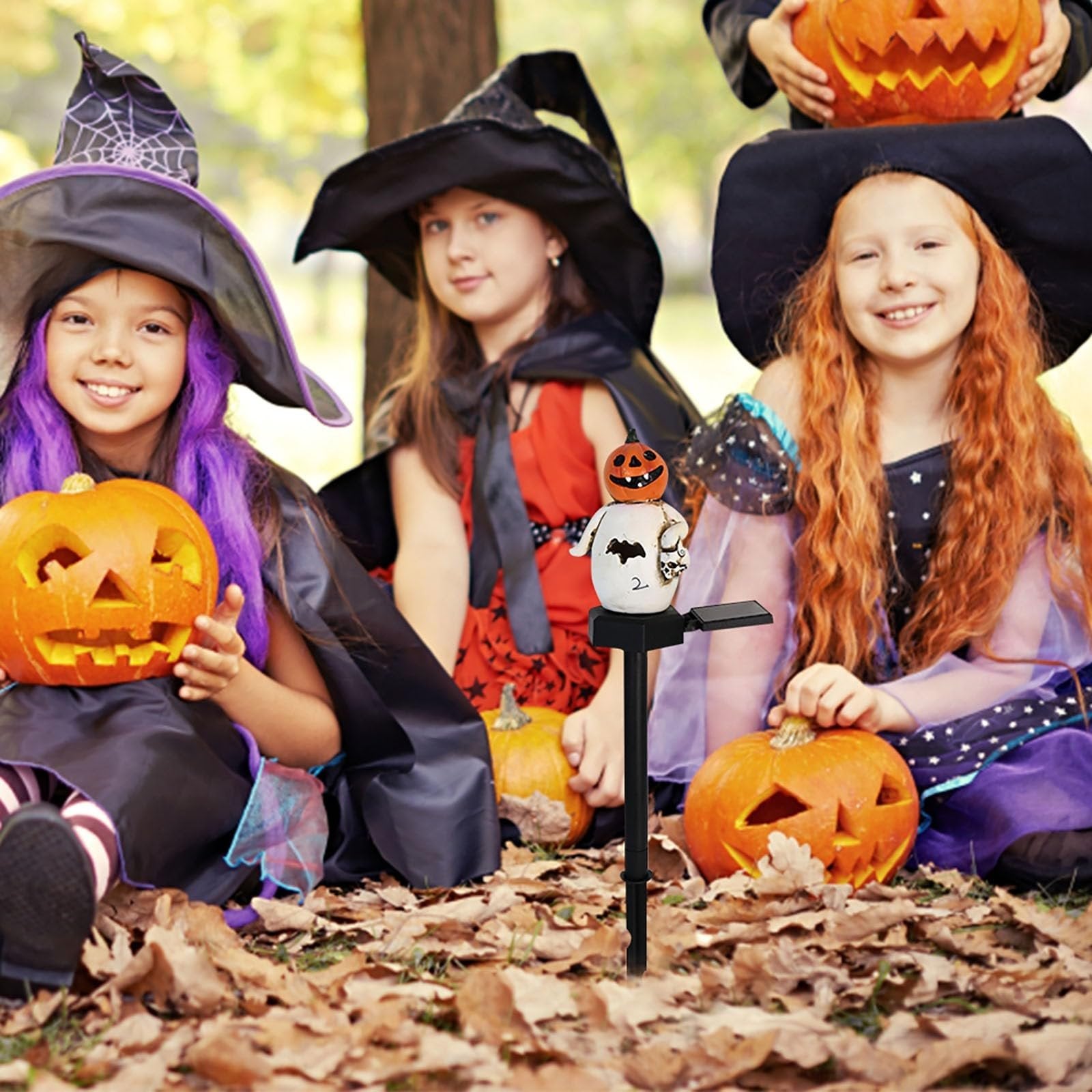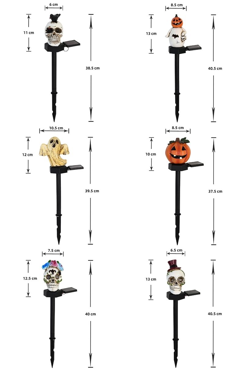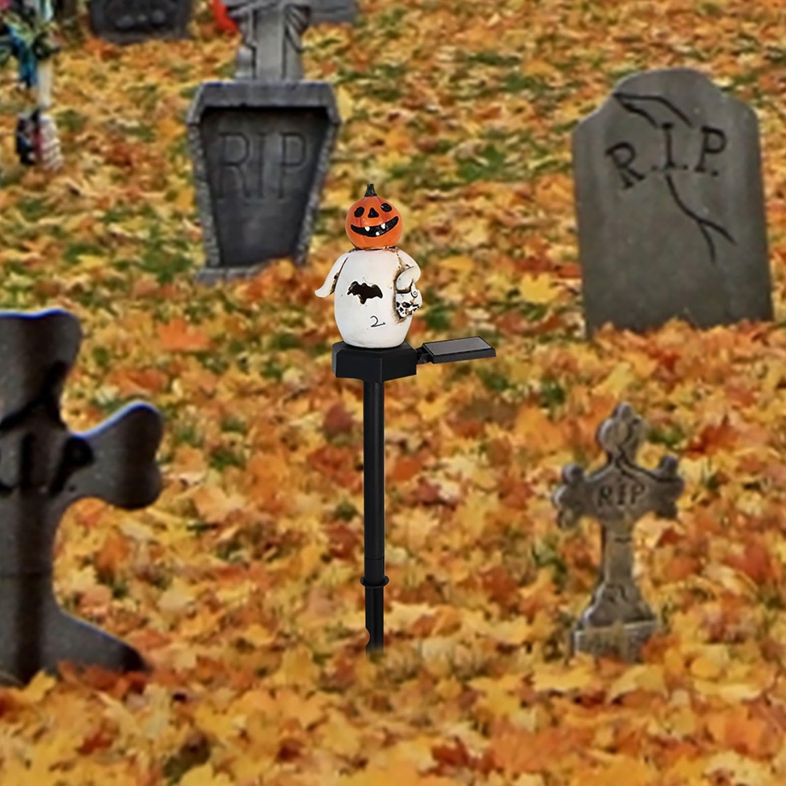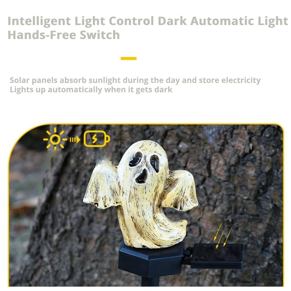 Spooky Design:Horror themed solar garden lights. The garden lights use unique ghost, pumpkin, skull and other Halloween elements to add to the festive atmosphere.