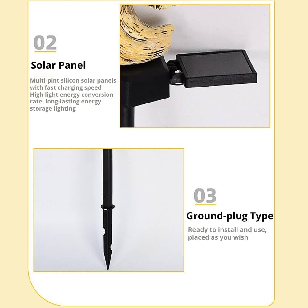 Solar-Powered:Built-in polycrystalline silicon solar panel, automatic charging during the day, intelligent power storage, lighting at night, energy-saving and environmentally friendly. ☀️ With intelligent light control function, the light will turn on automatically when it gets dark, no manual operation is required, convenient and practical, and start the smart home experience. After fully charged, it can provide about 8 hours of long-lasting lighting